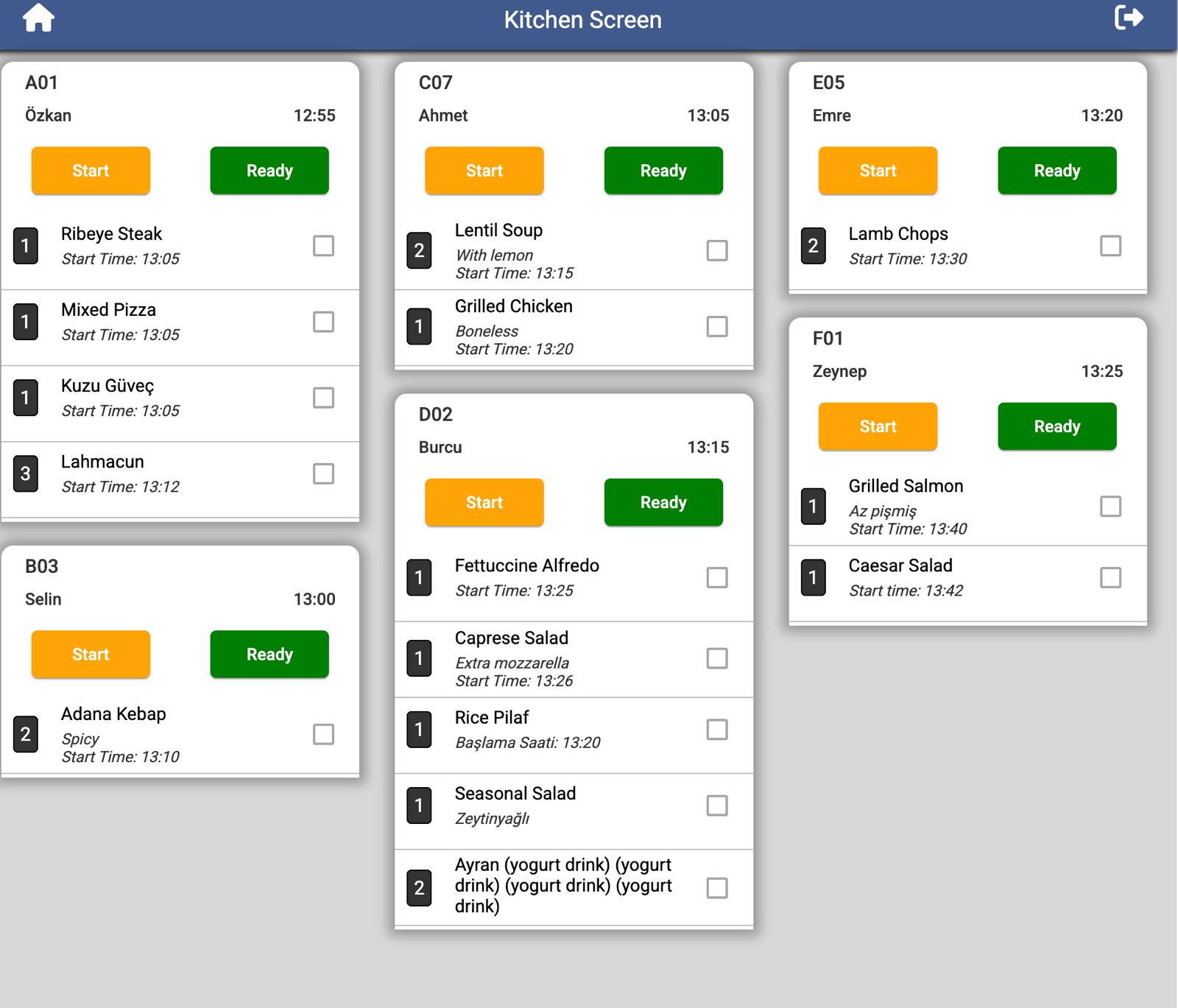 - Customer - Waiter - Kitchen Synchronization Orders, communication, and service steps proceed with triple synchronization.