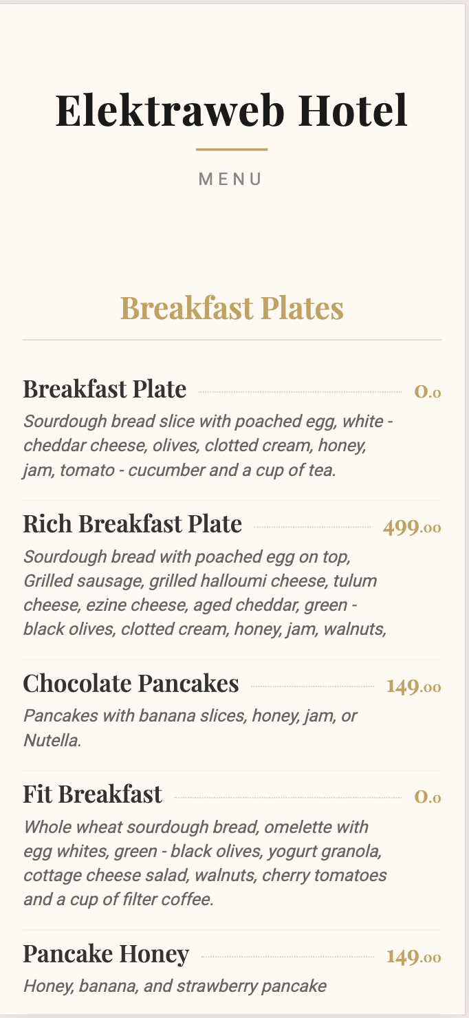 - Access the Menu via QR Code Guests can access the menu instantly by scanning the QR code.