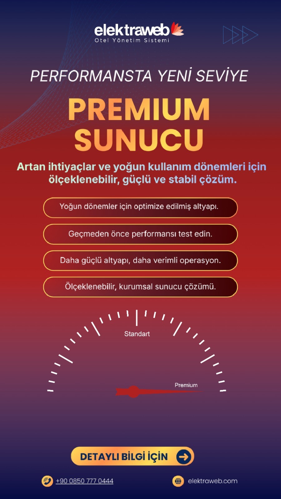 Sizleri, Elektraweb’i daha  yüksek performansta kullanabileceğiniz, artan ihtiyaçlarınıza veya yoğun kullanılan dönemlerinizde rahat edebileceğiniz, işlem gücü ve veri aktarım kapasitesi çok daha yüksek olan “Premium Sunucu” hizmetimize geçmeye davet ediyoruz.​​
