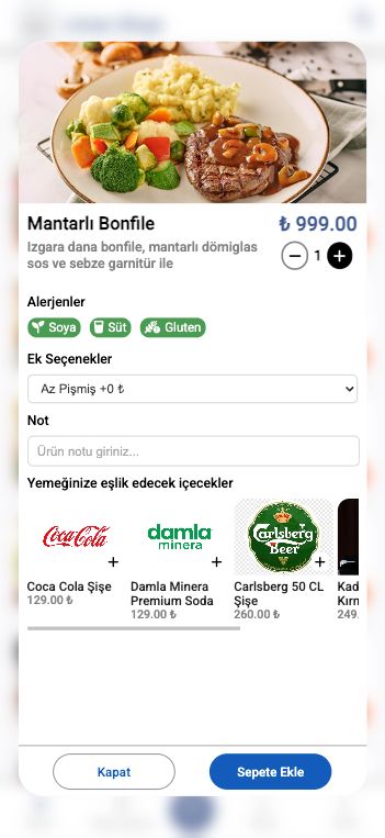 - QR ile Masa Eşleştirme Her masaya özel QR kodla anında menüye erişim ve otomatik masa tanımlama.