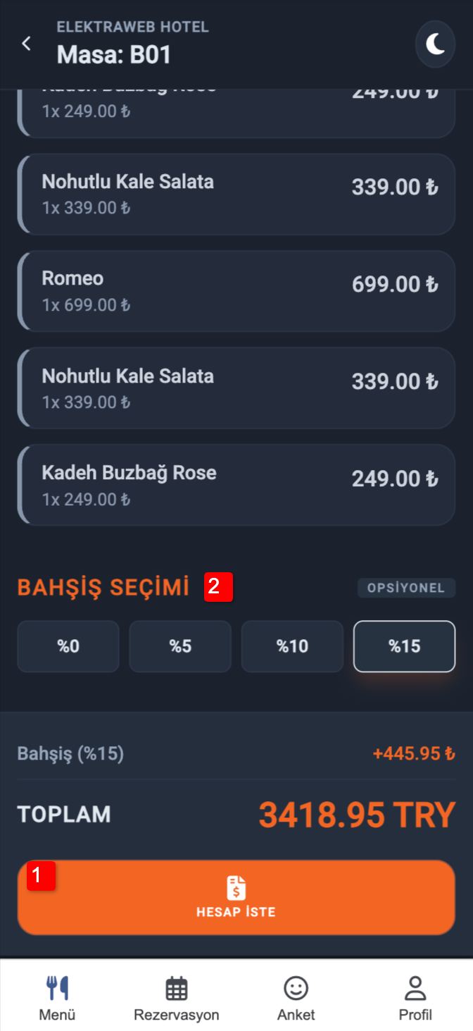 - 3. Misafir Garson İletişimi Misafirler diledikleri an tek dokunuşla: Garson çağırabilir Hesap isteyebilir Garsona mesaj gönderebilir.