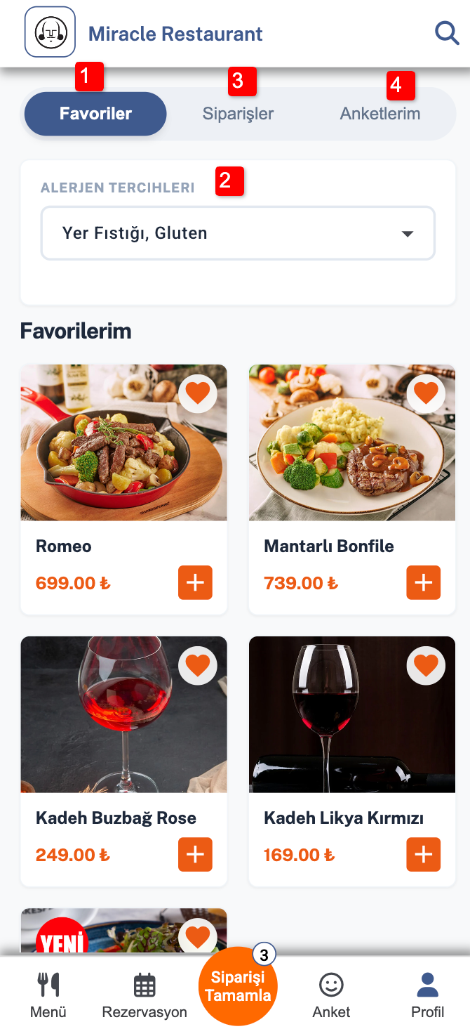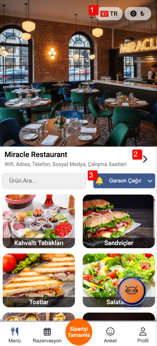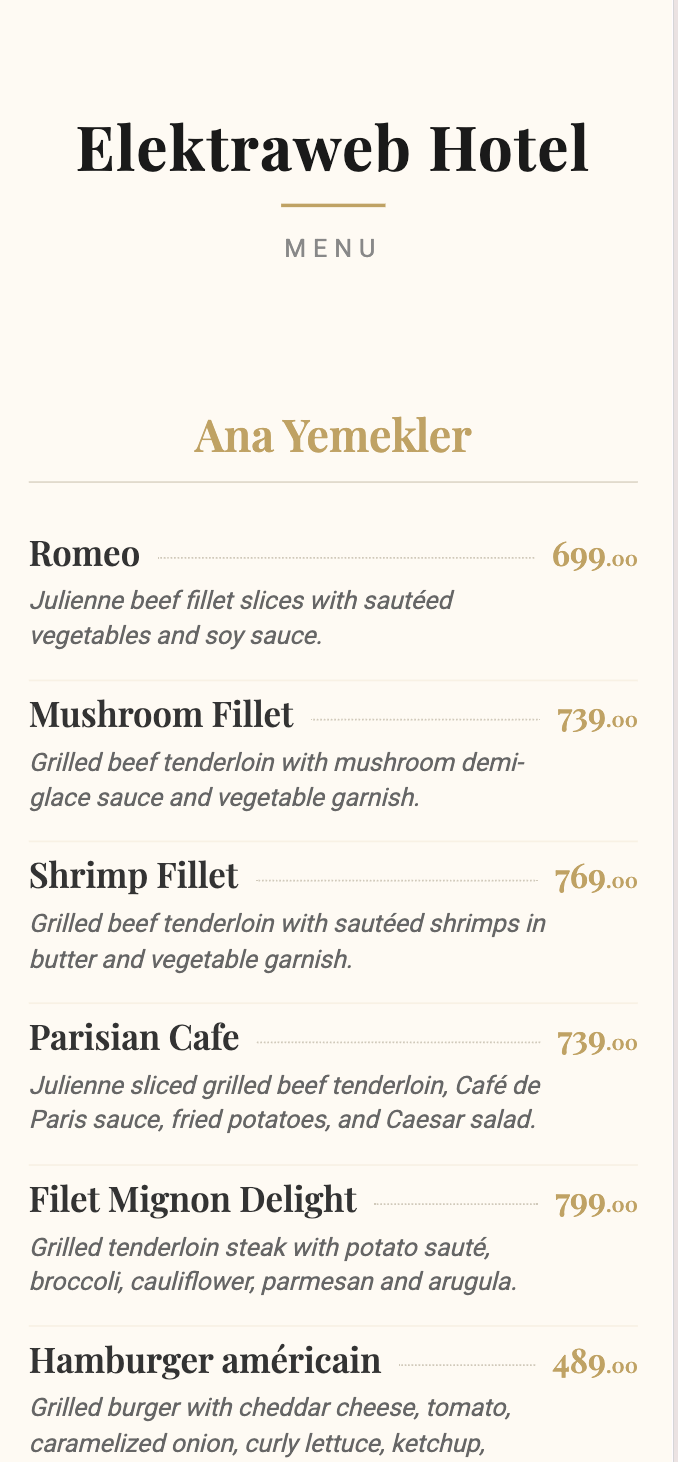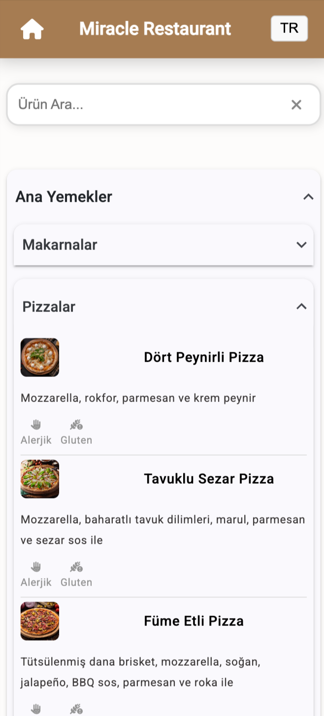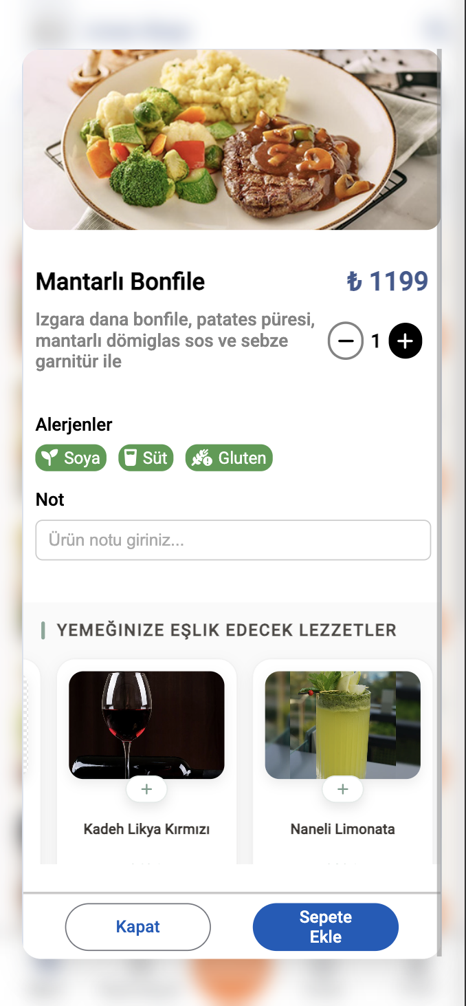 - 1. Çoklu Dil Seçeneği Misafirler menüyü kendi dillerinde inceleyebilir, ürünler hakkında detaylı bilgiye (içindekiler, alerjenler vb.) ulaşabilir.
