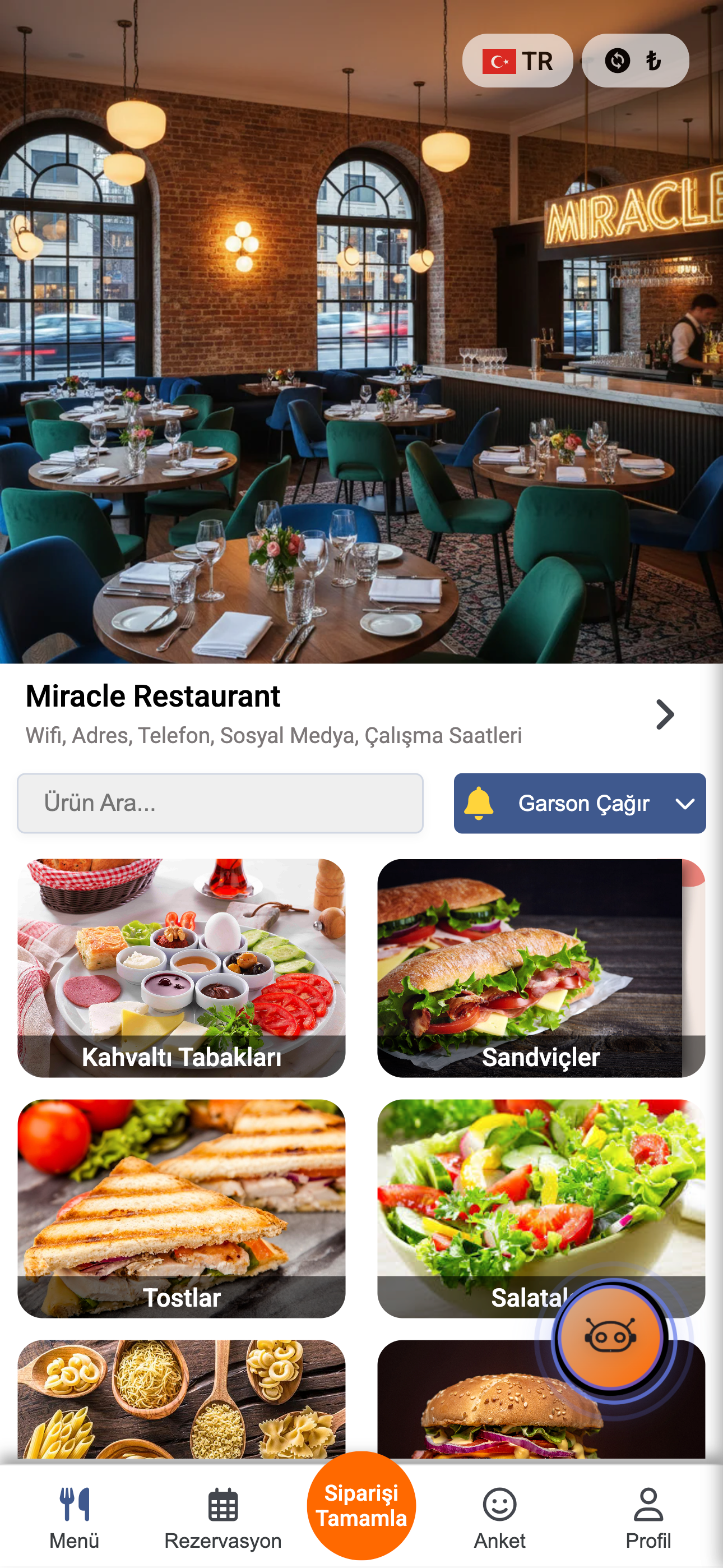 - QR Kod ile Menüye Erişim Misafirler, QR kodu okutarak anında menüye ulaşır.