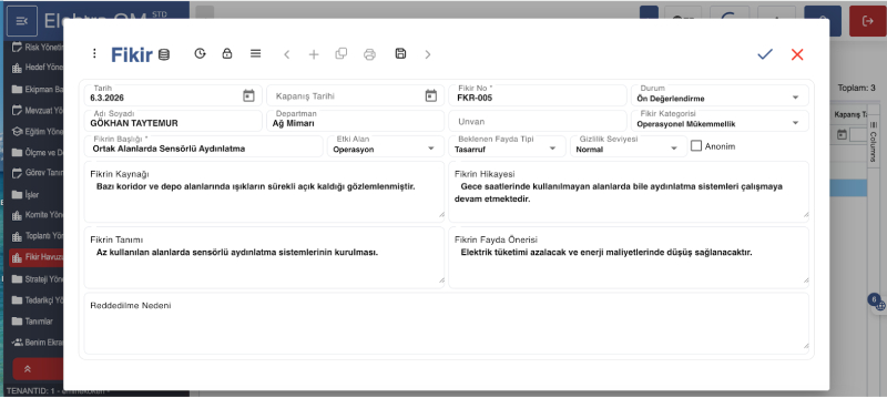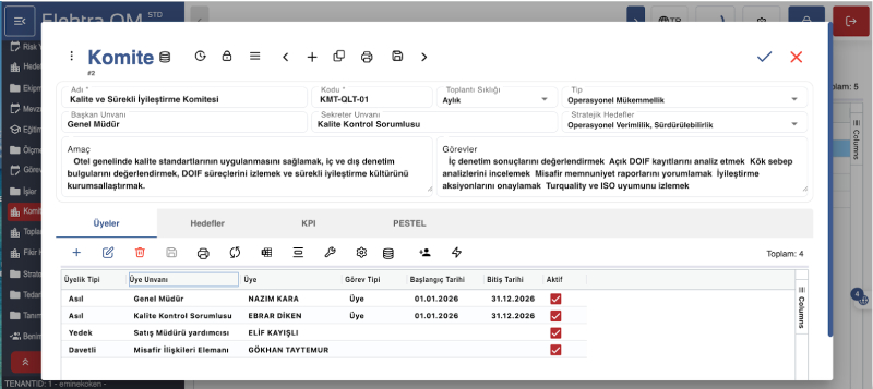 Aynı zamanda bu yapı; kurumsal planlama, performans takibi, sürekli gelişim ve yönetim mekanizmalarının dijitalleştirilmesi açısından güçlü bir avantaj sağlar. Stratejik hedeflerin analiz, aksiyon ve KPI katmanlarıyla birlikte yönetilmesi; daha disiplinli, şeffaf ve sürdürülebilir bir kurumsal yapı oluşturur.