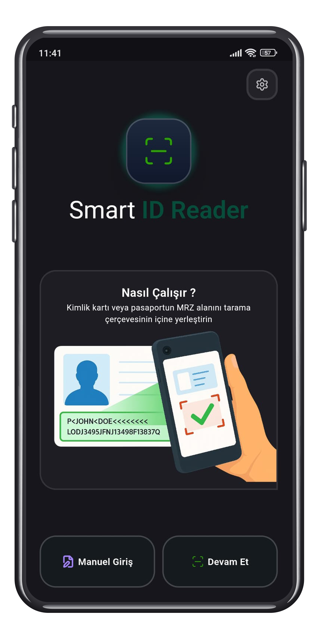 Android veya iOS cihazınızın kamerasıyla kimlik ya da pasaportu okutun. Cihaz bağımlılığı yok!