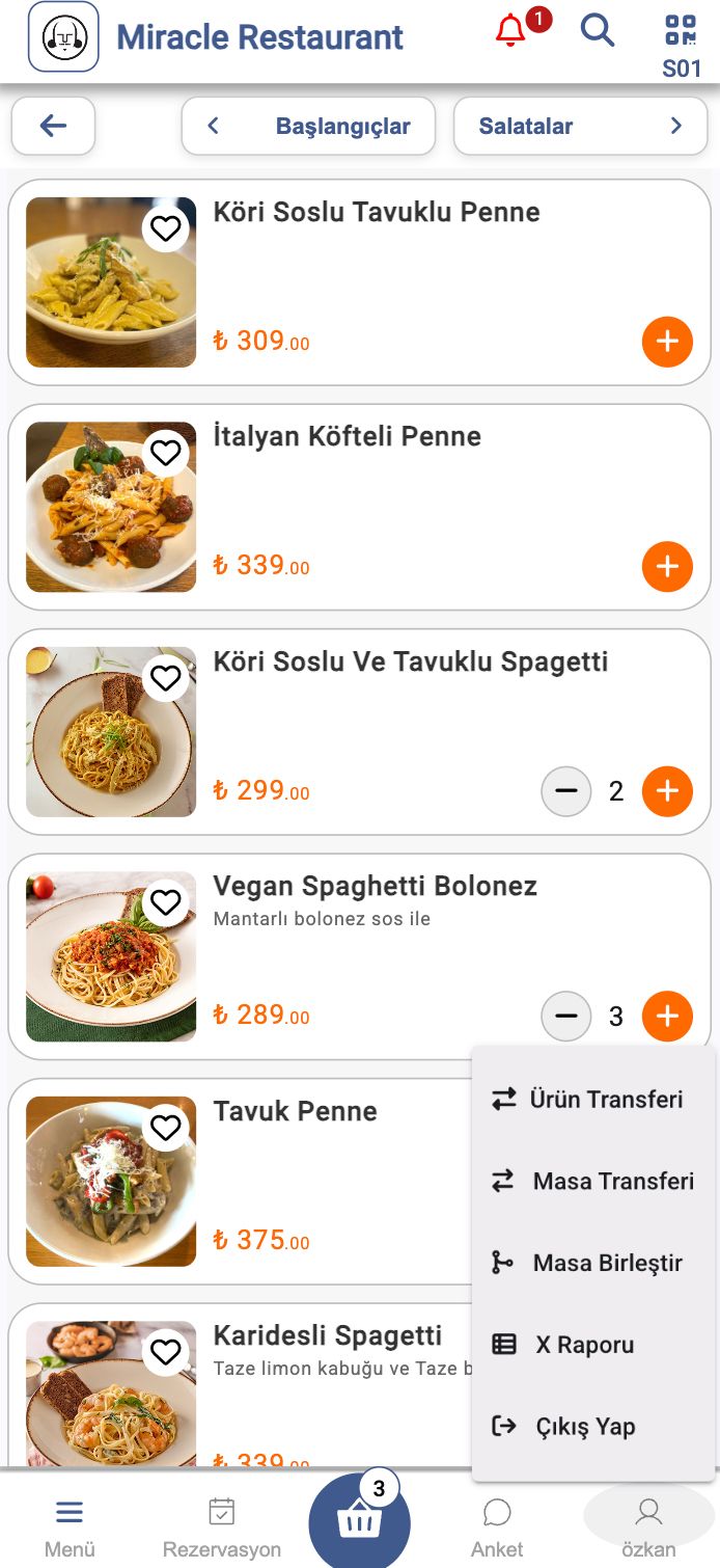 - 3 Harfle Hızlı Arama : Menüde aranan ürüne saniyeler içinde ulaşma kolaylığı.