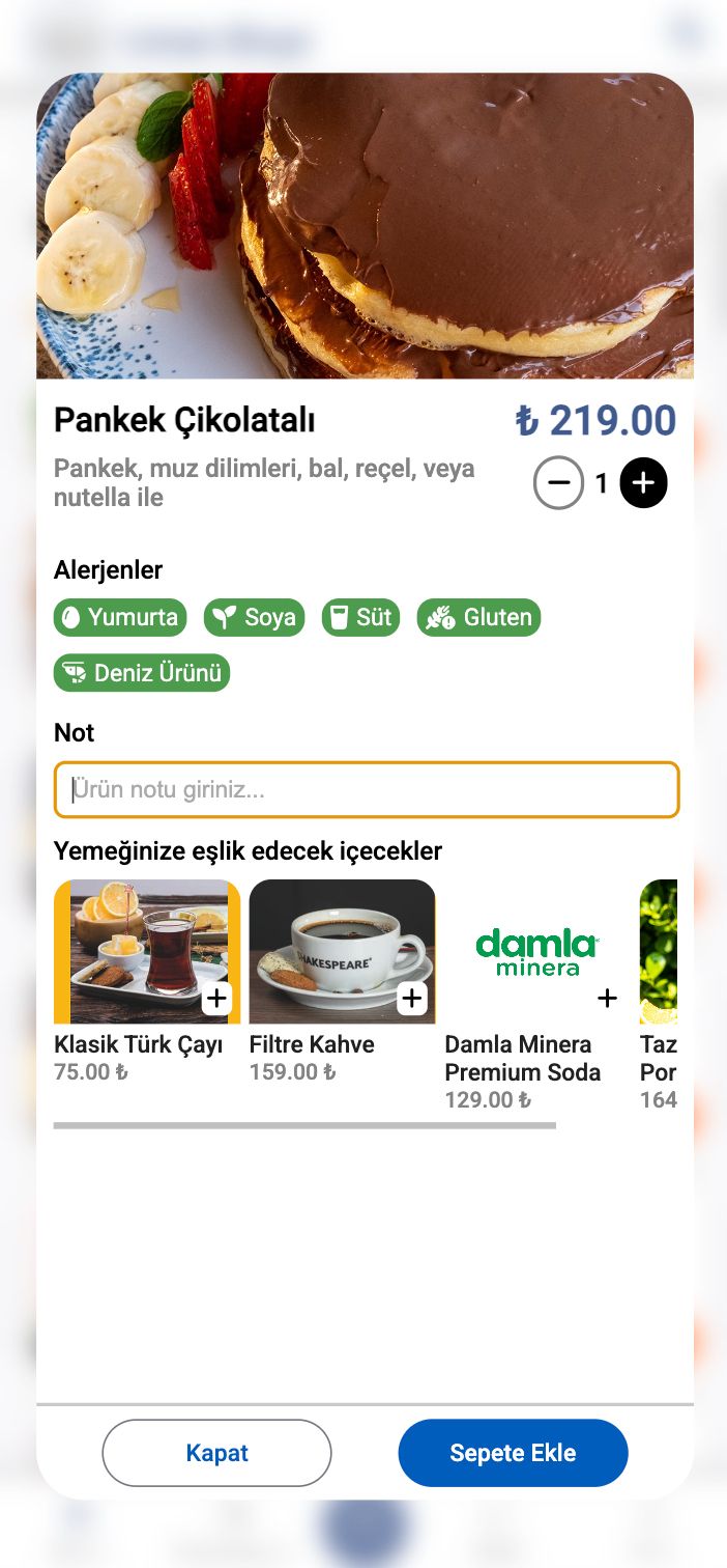 - Tek Dokunuşla Sipariş Verebilme : Karmaşık adımlar yok; menüden tek dokunuşla sipariş verilir.