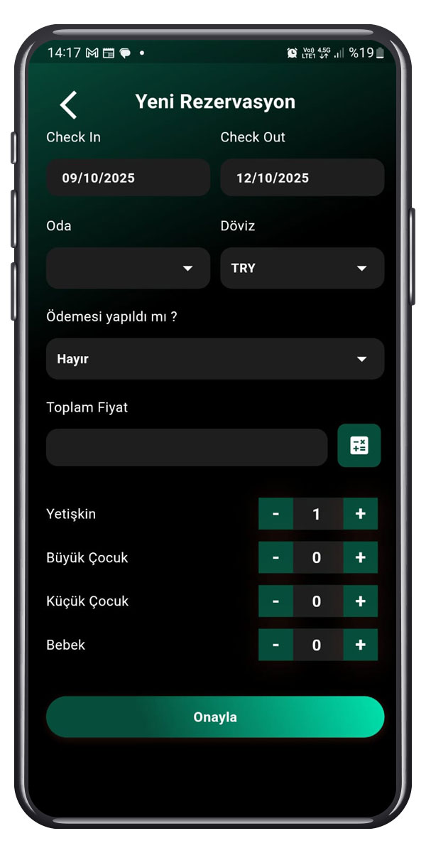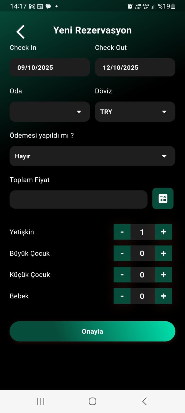 Beklenen rezervasyon yoksa sistem üzerinden hızlıca yeni bir kayıt oluşturulabilir.