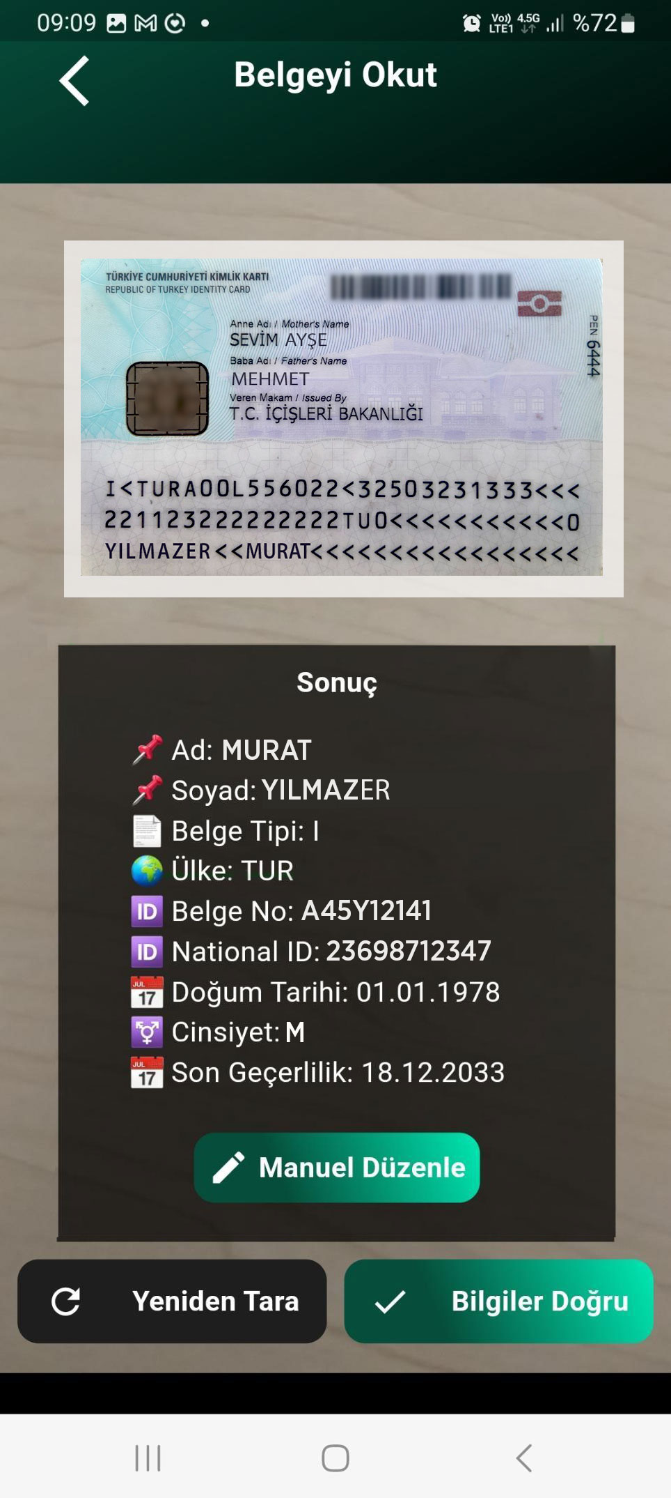 Android veya iOS cihazınızın kamerasıyla kimlik ya da pasaportu okutun. Cihaz bağımlılığı yok!